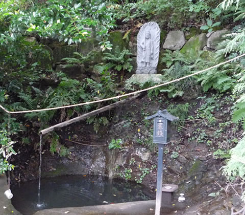 こちらの不動尊の足元から霊泉の滝が湧き出ています。